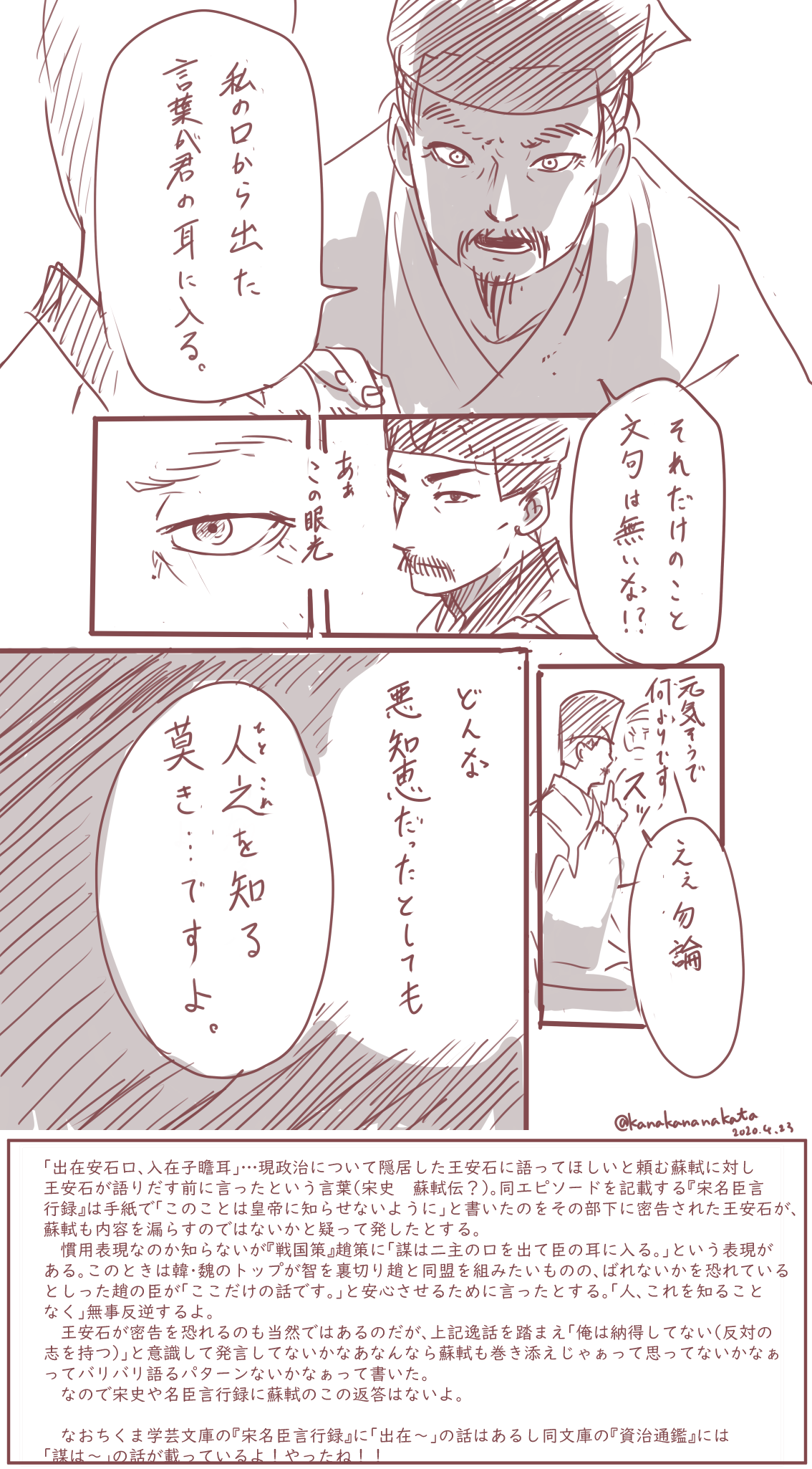 それぞれのセリフは「弾奏王安石文」と「答司馬諫議書」からとってます。