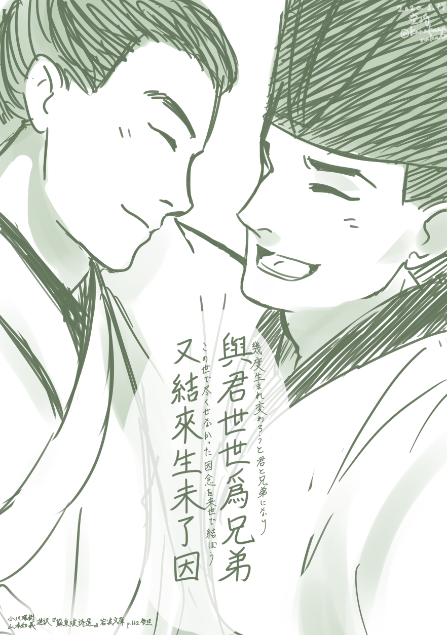 蘇兄弟(右が兄)はとりあえず一回イチャイチャさせとかないと次の絵が描けない。(詩は兄が死を覚悟したときのやつなので重い)